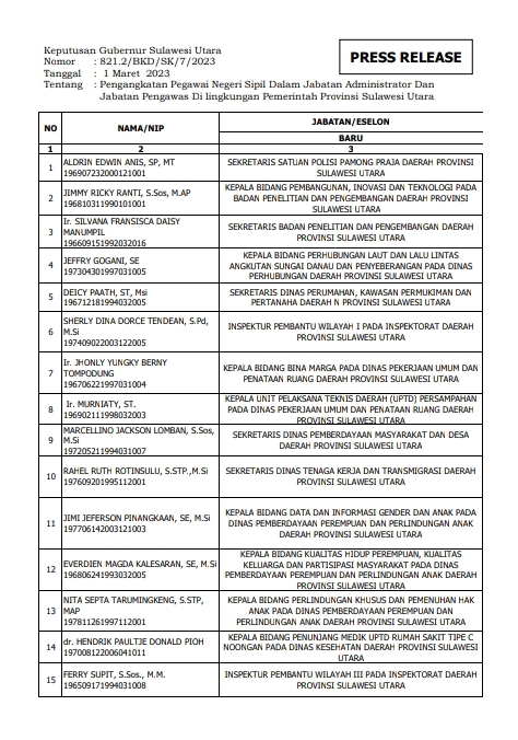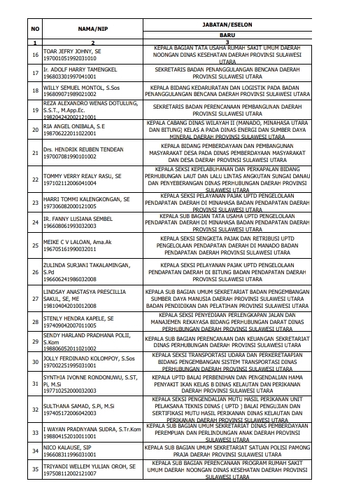 Ini Nama – Nama Pejabat Eselon III dan IV Pemprov Sulut Yang Dilantik Wagub Kandouw