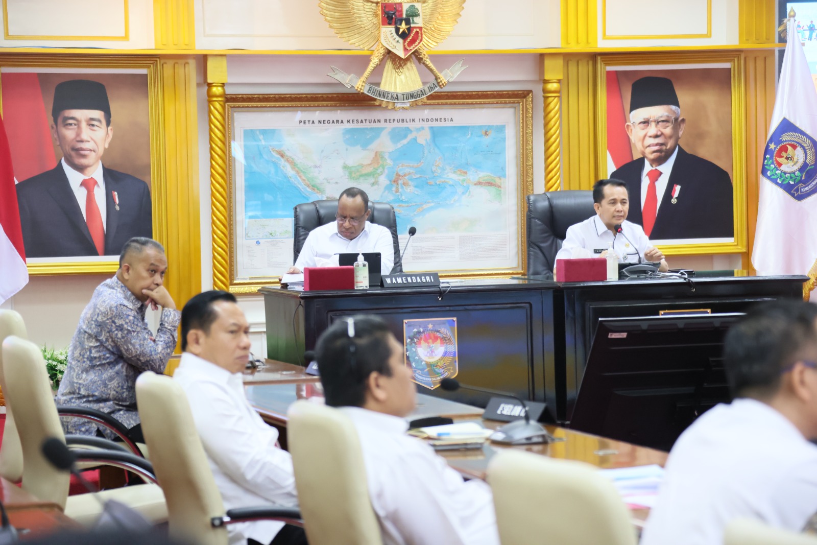 Rapat juga dihadiri Deputi Bidang Dukungan Kebijakan Pemerintahan dan Wawasan Kebangsaan Sekretariat Wakil Presiden. Sejumlah pejabat dari Kemendagri turut hadir antara lain pejabat dari Inspektorat Jenderal Kemendagri, Direktorat Jenderal (Ditjen) Otonomi Daerah (Otda), Ditjen Bina Keuda, Ditjen Politik dan Pemerintahan Umum (Polpum), serta dari Sekretariat Jenderal (Setjen) Kemendagri.(Kifli).