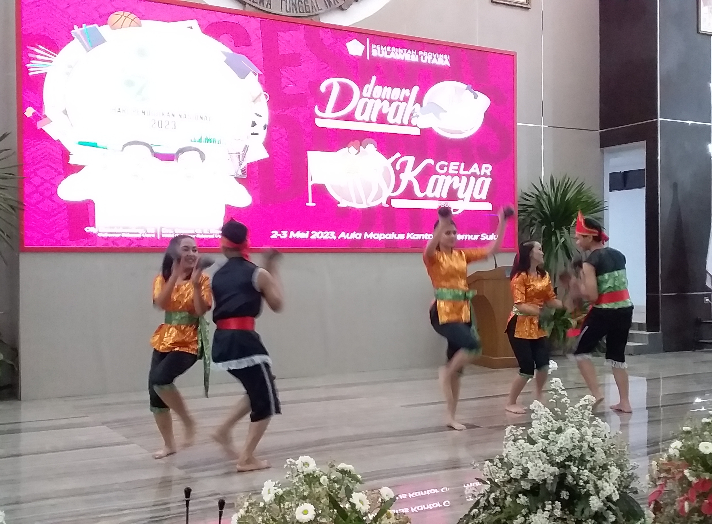 Manado, infosulut.id – SMK Negeri 1 Tomohon menampilkan tarian uka atau tarian tempurung pada hari terakhir Gelar karya tingkat SMA/SMK memperingati Hari Pendidikan Nasional Tahun 2023 tingkat Provinsi Sulut pada 2 – 3 Mey 2023 di Aula Mapalus Kantor Gubernur.