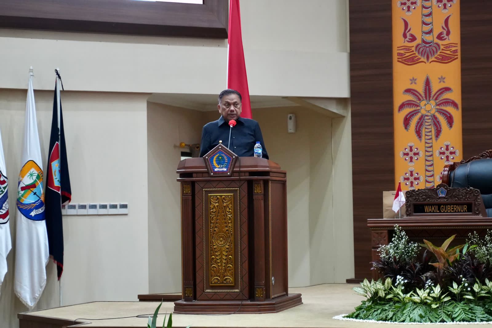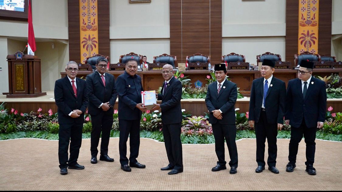Keterangan opini WTP dibacakan Anggota VI BPK selaku Pimpinan Pemeriksaan Keuangan Negara VI, Pius Lustrilanang dalam rapat paripurna DPRD Sulut yang dipimpin Ketua DPRD Fransiscus Andi Silangen, Wakil Ketua Victor Mailangkay dan Billy Lombok, Senin (15/5/2023).