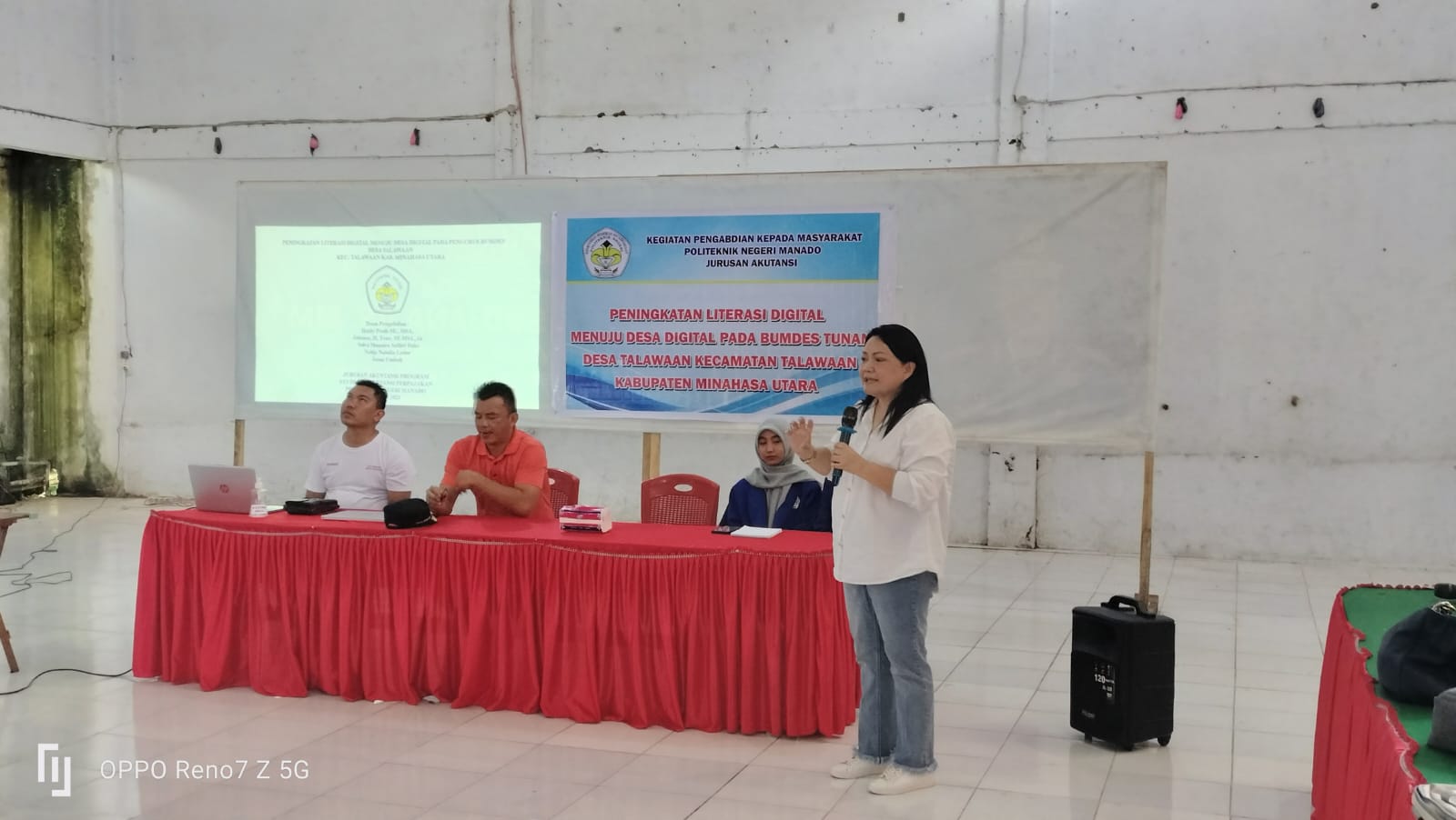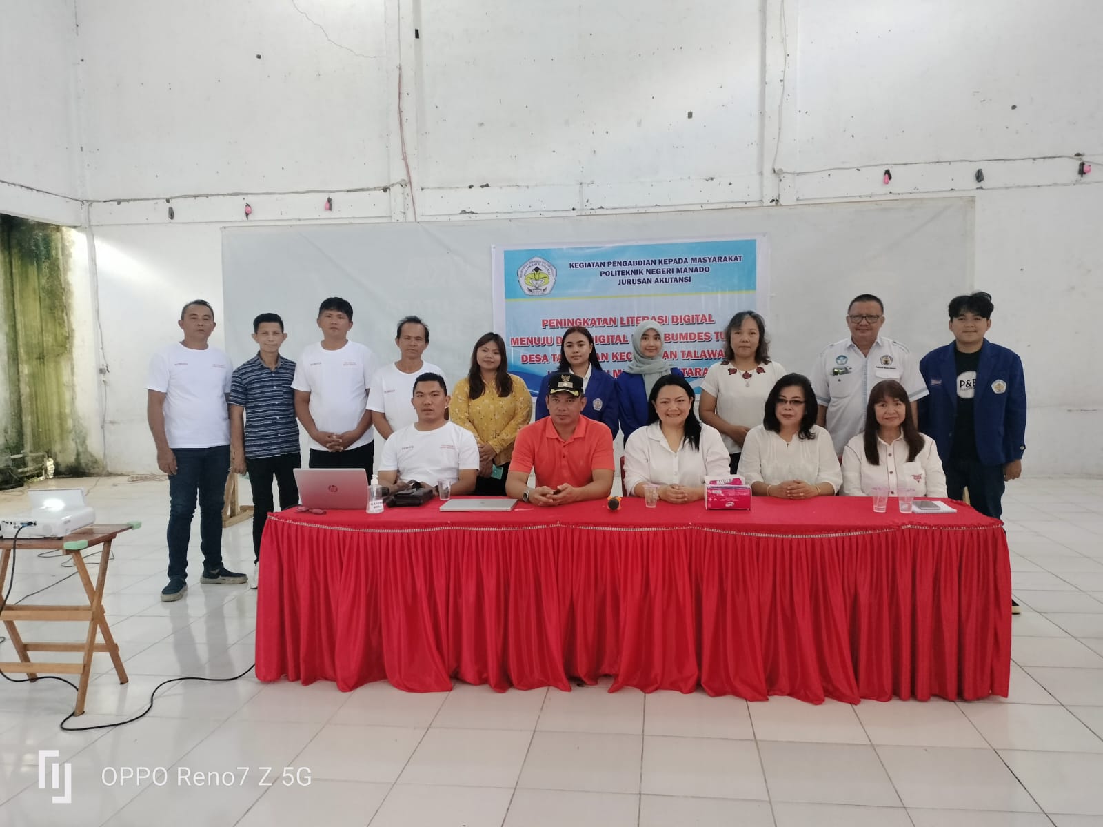 Pengabdian itu bertemakan peningkatan literasi digital menuju Desa digital pada pengurus BUMDES Desa Talawaan, Kecamatan Talawaan, Kabupaten Minut.
