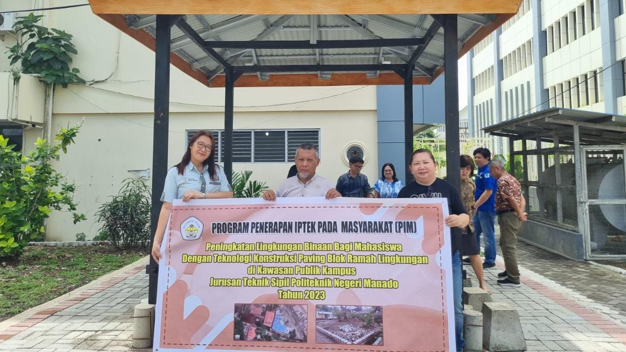Untuk menyelesaikan persoalan tersebut, tim pelaksana pengabdian program penerapan IPTEK pada masyarakat (PIM), yang diketuai oleh Sudarno ST MT beserta anggota Dr Febriane Paulina Makalew ST MUDD, Helen Grace Mantiri SST MT, dan Ventje Berty Slat ST MT menemukan solusinya dengan melakukan peningkatan lingkungan berupa pemasangan paving blok di ruang publik Jurusan Teknik Sipil Polimdo.