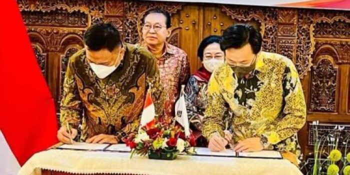 Gubernur Sulut Olly Dondokambey saat menandatangani MoU dengan pihak VP and CEO Jeju Air, pada 16 September 2022 silam.(Foto: ist)