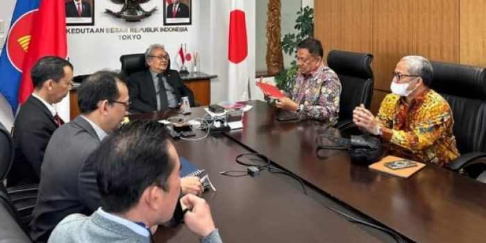 Gubernur Sulut Olly Dondokambey SE dalam pertemuan bersama Dubes RI untuk Jepang, di Tokyo, Selasa 28 Maret 2023.(Foto: ist)