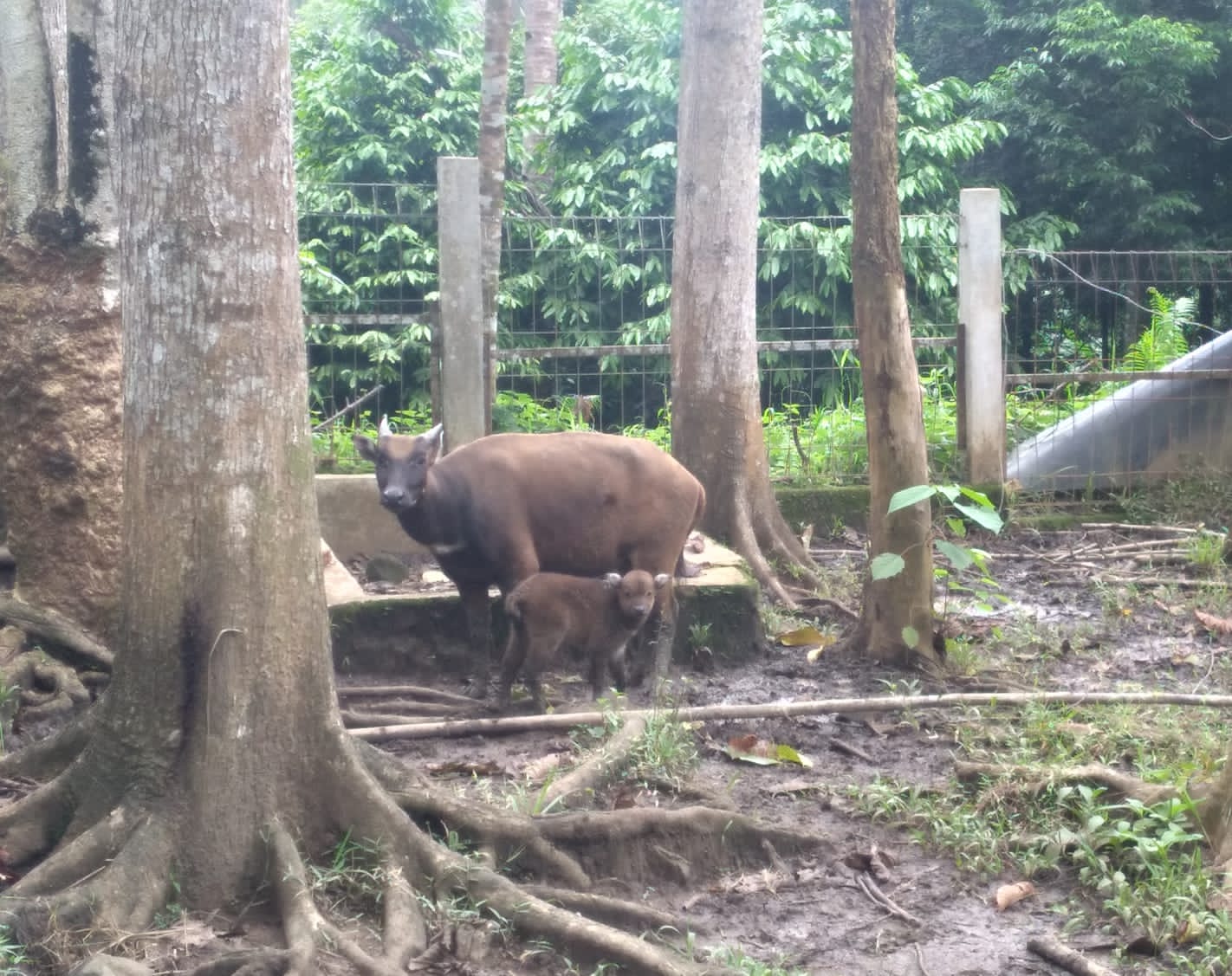 Induk betina Anoa, Anara, bersama bayinya yang berusia seminggu di Anoa Breeding Center (ABC) Manado, Senin (17/07/2023). Bayi Anoa ini merupakan yang kelima lahir di fasilitas tersebut.