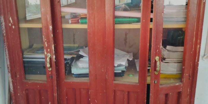 Lemari Sekolah yang terlihat sudah rusak banyak berlubangĀ