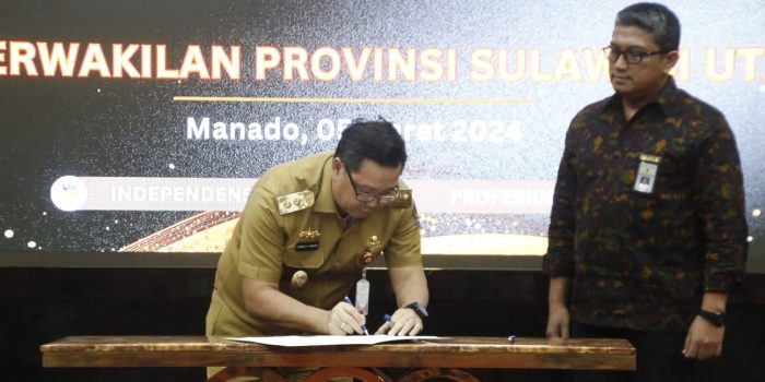 Manado, Infosulut.id – Wakil Gubernur Sulut, Drs. Steven Kandouw menyerahkan Laporan Keuangan Pemprov Unaudited Tahun Anggaran 2023 ke BPK RI, Selasa (5/3).