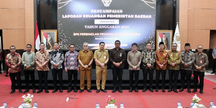 Adapun Laporan Keuangan Pemerintah Daerah diterima Kepala BPK RI Perwakilan Sulawesi Utara Arief Fadillah S.E., M.M., CSFA di Auditorium Kantor BPK Perwakilan Provinsi Sulut, Jalan 17 Agustus, Kota Manado.