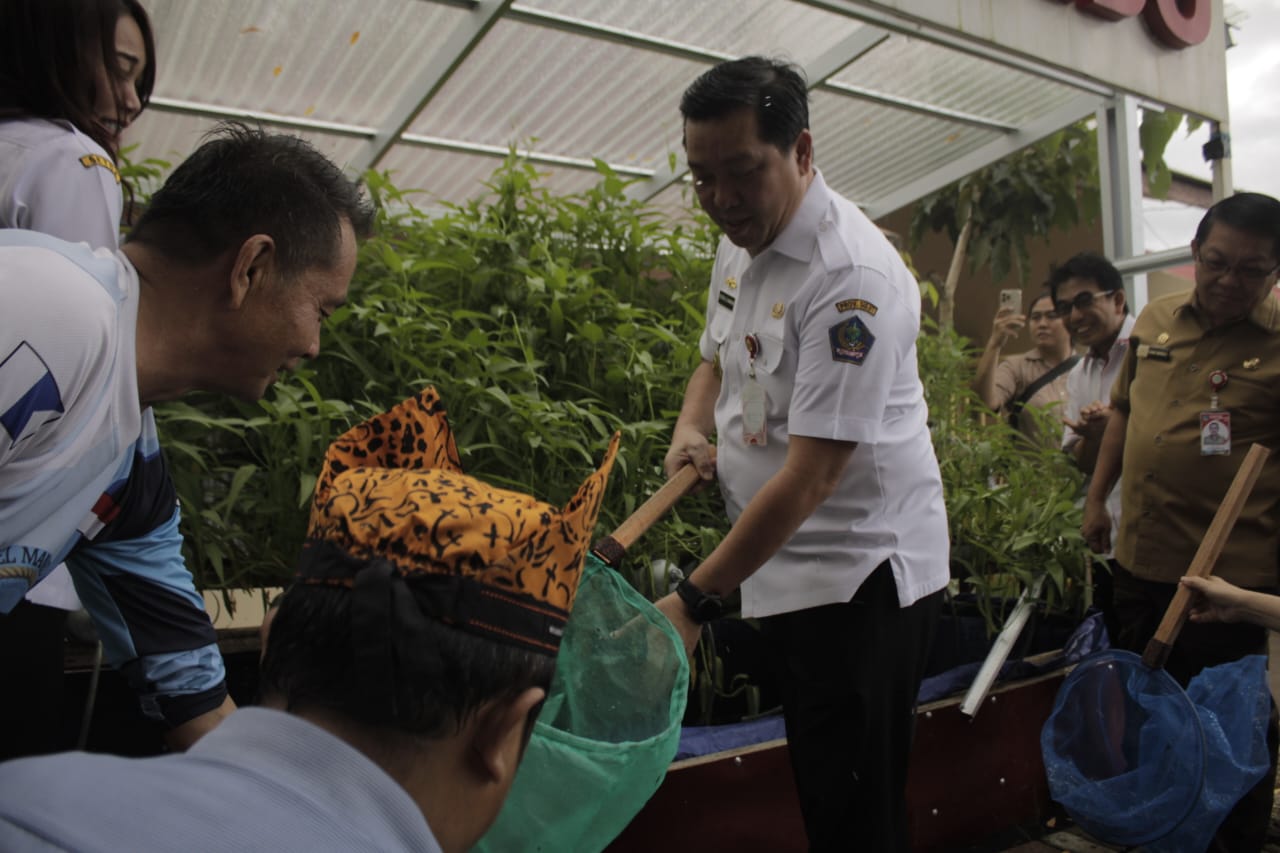Wagub ikut panen perdana ikan mujair dan sayur kangkung hasil program kamberu.