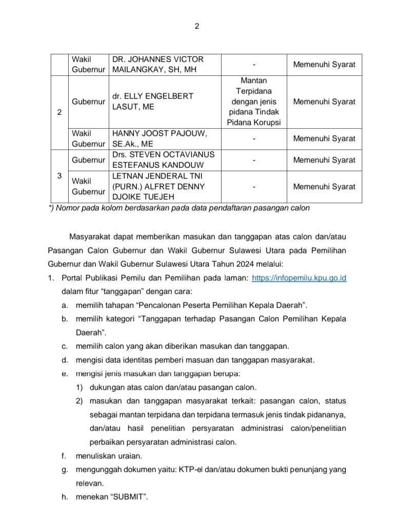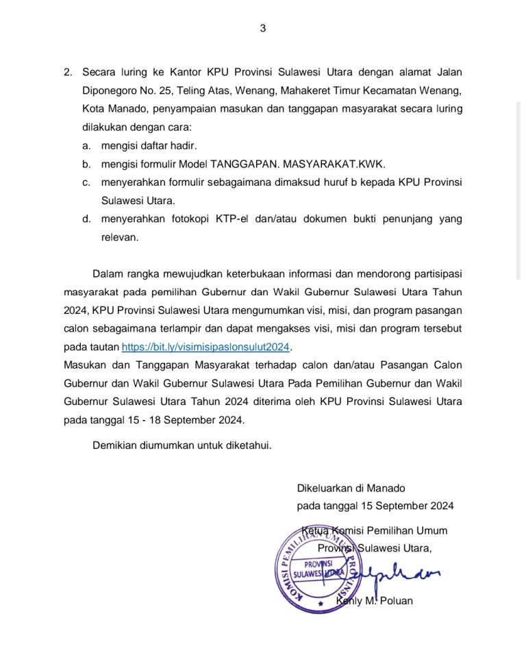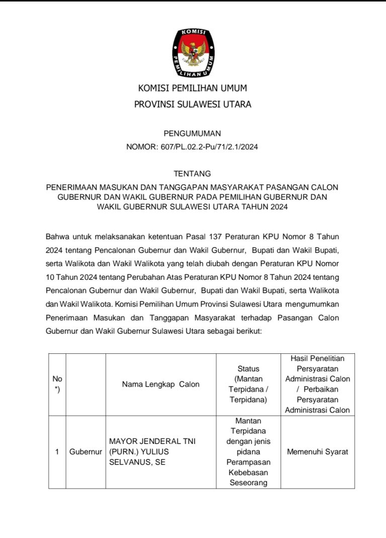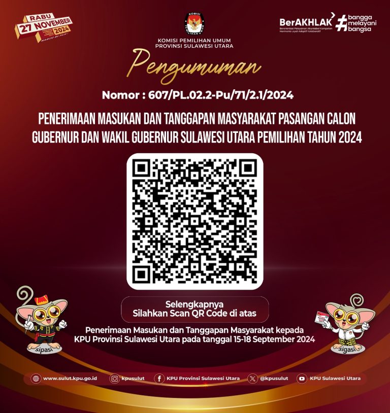 KPU Sulut Buka Masukan dan Tanggapan Masyarakat Terhadap Tiga Bapaslon Pilgub 2024 15 September 202416 September 2024oleh admin-9 Dilihatoleh admin Post Views: 9