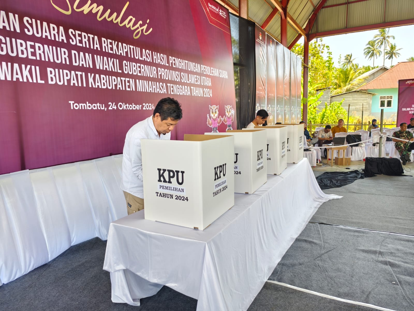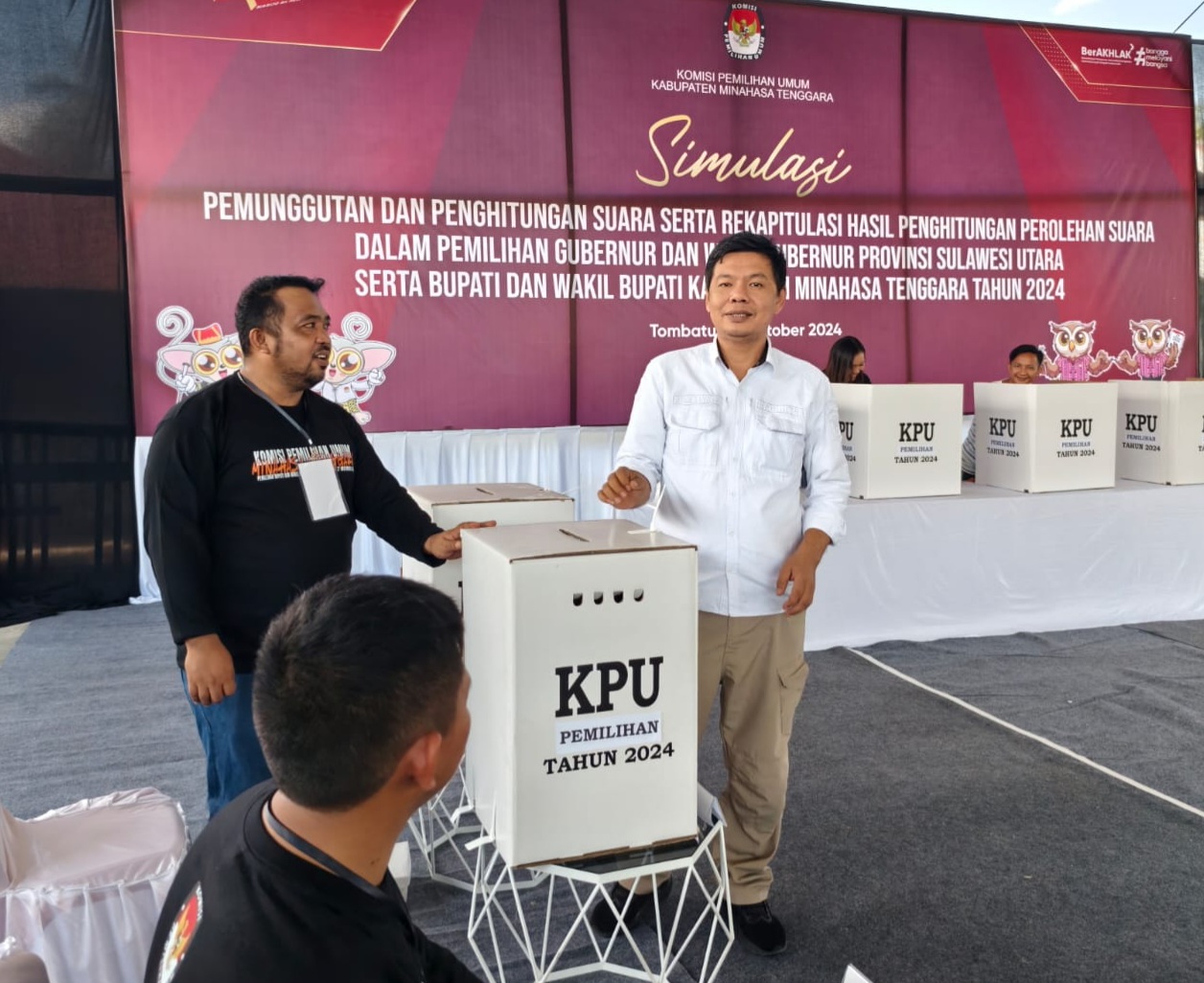 Mitra, Infosulut.id – Komis Pemilihan Umum (KPU) Kabupaten Minahasa Tenggara (Mitra) melaksanakan Simulasi Pemungutan dan Perhitungan suara serta rekapitulasi perhitungan perolehan suara dalam pilihan Gubernur dan Wakil Gubernur Provinsi Sulut serta Bupati dan wakil Bupati Kabupaten Mitra kamis (24/10-2024).