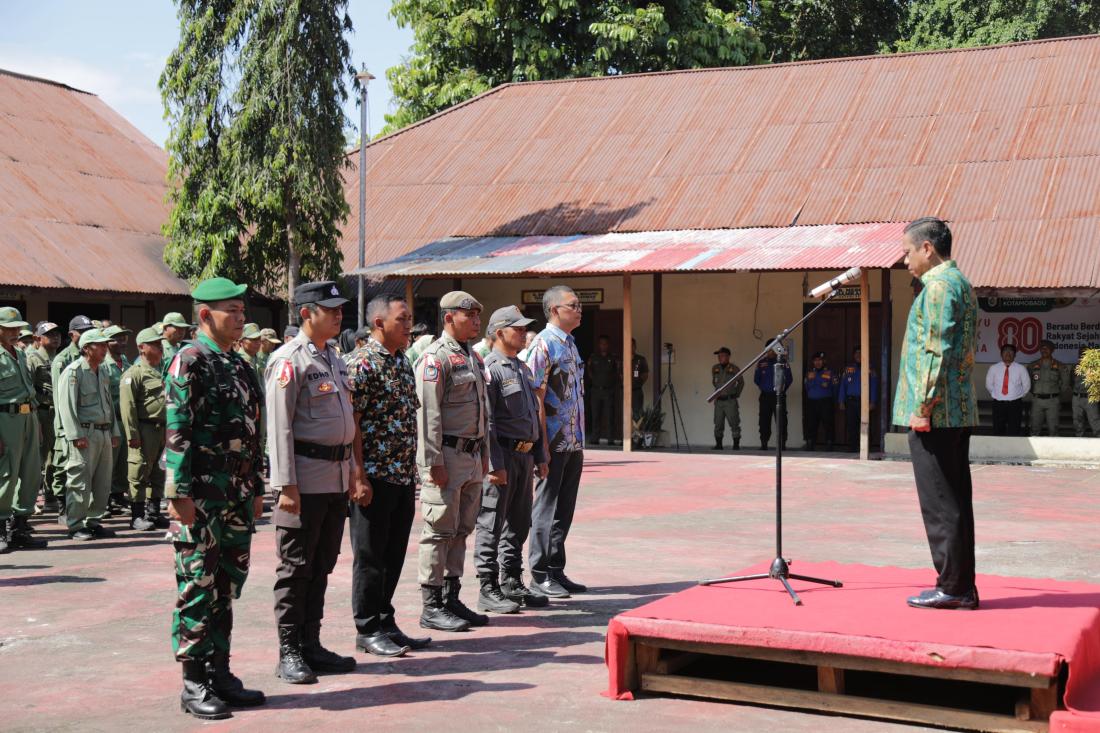 Suasana pengukuhan anggota Satlinmas Kota Kotamobagu yang dipimpin langsung Wali Kota Weny Gaib. (foto: Diskominnfo Kotamobagu)