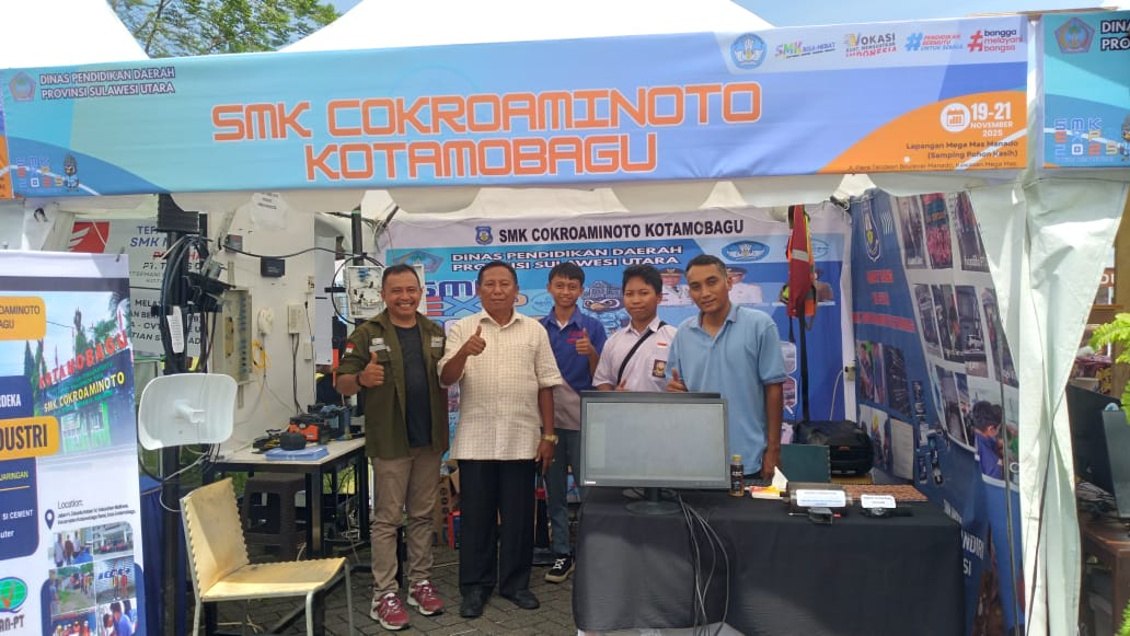 Manado, Infosulut.id – Stand SMK Cokroaminoto Kotamobagu menampilkan karya siswanya saat mengikuti SMK Expo 2025 di Megamas Kota Manado pada Rabu (19/11/2024) hingga (21/11/2025).