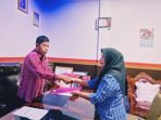 Kepala Dinas Pendidikan Kabupaten Minahasa Utara, Aldrien Posumah saat menyerahkan surat penunjukkan PLH kepada Kepsek SD Inpres Klabat baru Rasni Bone.(Foto:Istimewah). Minut,