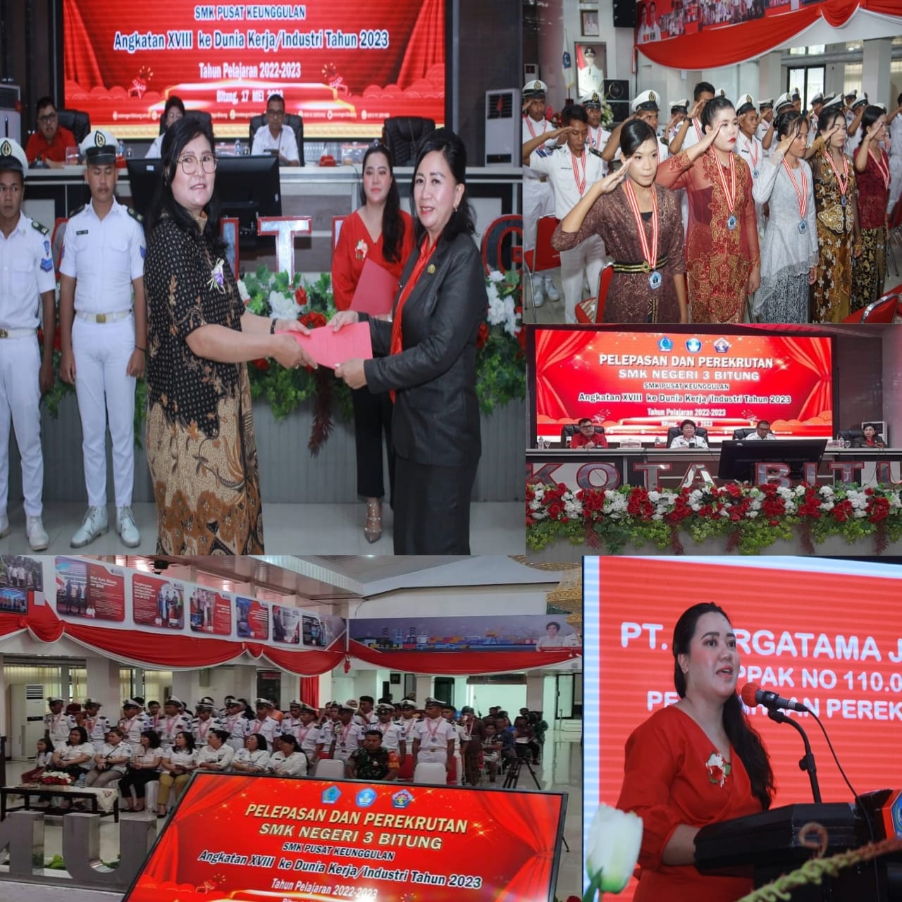 Acara Pelepasan dan Perekrutan Angkatan ke XVIII THN 2023 SMKN 3 Bitung yang lulus sebanyak 72 siswa dengan angka prosentase 100 %.