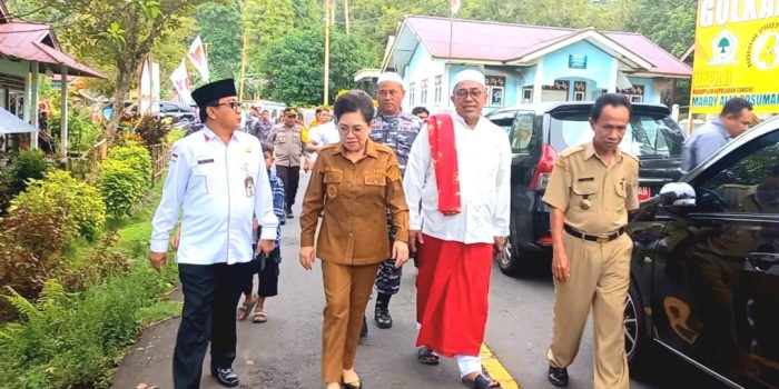 Penjabat Bupati Sangihe, dr. Rinny Tamuntuan bersama Abid Takalamingan calon Anggota DPD RI di Desa Talawid Senin (15/01/2024).(Foto:ist).