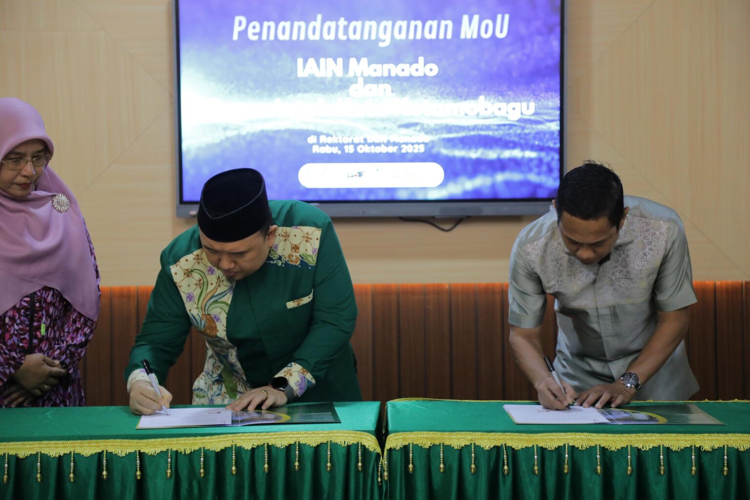 Penandatanganan kesepakatan dilakukan oleh Wali Kota Kotamobagu, dr. Weny Gaib, Sp.M, bersama Rektor IAIN Manado, Prof. Dr. Ahmad Rajafi, M.H.I, di Kampus IAIN Manado, Rabu (15/10/2025).