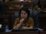 ( Visual Foto // Kepala Dinas Pendidikan Sulawesi Utara Femmy J. Suluh saat menjawab pertanyaan dari anggota Pansus LKPJ Louis Carl Shcramm