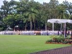 Gubernur Sulut, Mayjen TNI (Purn) Yulius Selvanus SE bertindak sebagai inspektur upacara pada Hardiknas 2025 di halaman Kantor Gubernur Sulut, Jumat (2/5/2025).(Foto:ist).