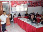 Pemaparan materi oleh Siska Pangalila SE MAP dari Dinas Tenaga kerja dan Transmigrasi Kota Bitung terkait Penguatan Kelembagaan BKK dan Pekerja Migran